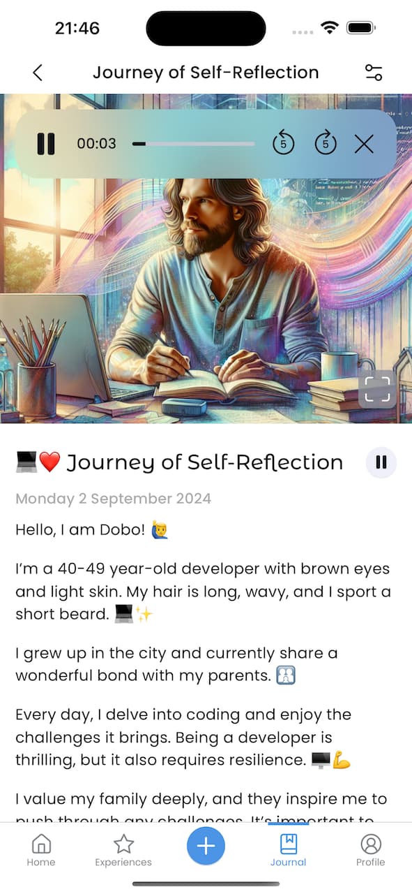 Let Onsen read your entries aloud! This new feature allows you to reflect on your thoughts in a whole new way—just tap a button and listen to your own words come alive.