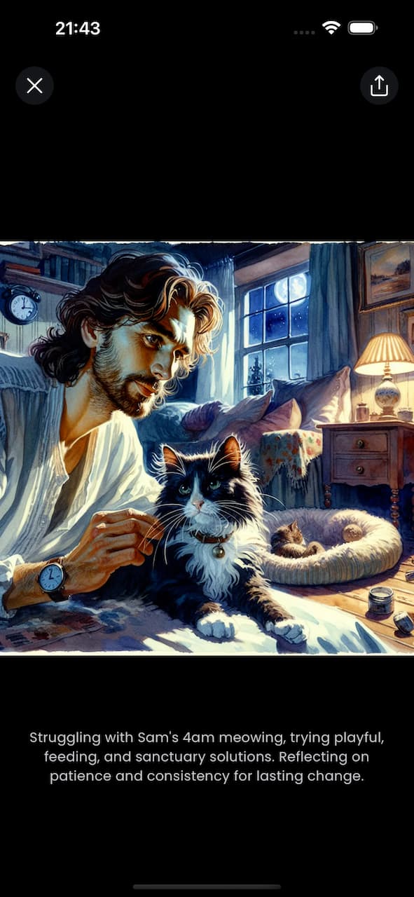 Your journal entry images now come to life! You can view them in full screen, zoom in, and easily share with friends or on social media. Prefer to keep them to yourself? You can also save them directly to your device.